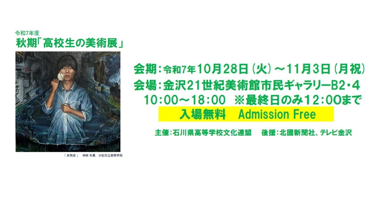 - 【10/28(火)~11/4(月祝)】令和7年度石川県高等学校文化連盟秋期「高校生の美術展」