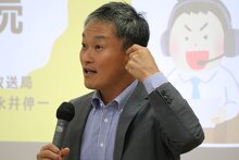 午前はNHK金沢放送局より,アナウンサーの永井伸一先生,ディレクターの本吉佑香先生をお招きし,アナウンス・朗読の基礎,番組制作の基礎についての研修を行いました。永井先生は発声・発音の基礎を実践を交えていただき,本吉先生は自ら制作に関わった番組を鑑賞しながら,永井先生と掛け合いしながら説明されました。お忙しい中,本当にありがとうございました。