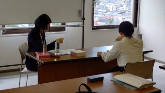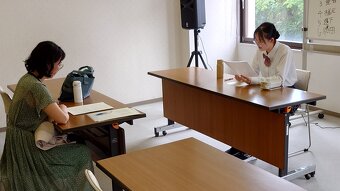 また,大会翌日の6日(金),県青少年総合研修センターにおいて,全国大会出場者への研修会を行いました。アナウンス・朗読部門については,フリーアナウンサーの竹嶋和江先生,原田幸子先生をお招きし,個人レッスンを行っていただきました。番組部門については,入賞作品を全員で視聴し,改善点などを話し合いました。大会翌日ということでまさに「鉄は熱いうちに打て」の言葉通り,生徒たちは熱心に取り組んでいました。