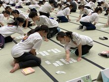 7月31日(水)~8月2日(金)、岐阜県山県市総合体育館にて、「清流の国ぎふ総文2024」競技かるた部門が開催されました。7月31日には各都道府県代表メンバーの交流会が行われました。8月1日(木)予選リーグで、兵庫県と宮崎県と対戦し2勝し、決勝トーナメント進出。8月2日(金)の決勝トーナメントで、滋賀に3-2と惜しくも敗退してしまいましたが、最後まで粘り強い戦いを見せてくれた皆さんには感謝です。ありがとうございました。